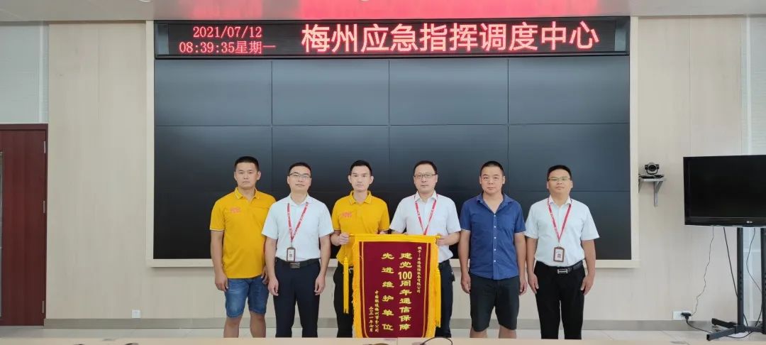活动当天,各传输枢纽值守、干线盯防、仪表、车辆、应急物资全部到位,除落实安全人员24小时值班机制外,公司还部署实施了态势感知、应急响应、持续安全评估、安全监测巡检等措施,实现重保期间网络安全零事故。为此,z6.com中国公司通服被中国联通梅州市分公司授予“建党100周年通信保障先进维护单位”的荣誉锦旗。