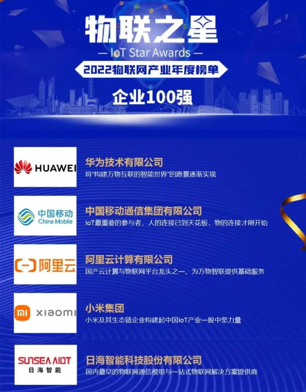 “物联之星”物联网行业年度榜单作为物联网行业超高权威性、专业性的评选活动一直备受瞩目,被誉为中国物联网行业的奥斯卡奖。近日,一年一度的2022“物联之星”物联网行业年度榜单的结果重磅来袭,z6.com中国公司智能不负众望,荣登2022年度“物联之星”中国物联网企业100强!